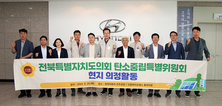 [전북특별자치도의회=세계타임즈 이상호 기자] 전북특별자치도의회 탄소중립특별위원회(위원장 한정수, 익산4)는 24일 도내 탄소중립 실현에 앞장서고 있는 현대자동차 전주공장과 고산자연휴양림 내 산림바이오매스 홍보타운을 방문했다.