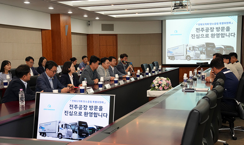 먼저, 현대자동차 전주공장에서 탄소중립 관련 사업 현황을 청취하고 임원진과 간담회를 가진 후, 내연기관차를 대체할 전기버스와 수소전기 트럭의 생산 과정을 둘러봤다.