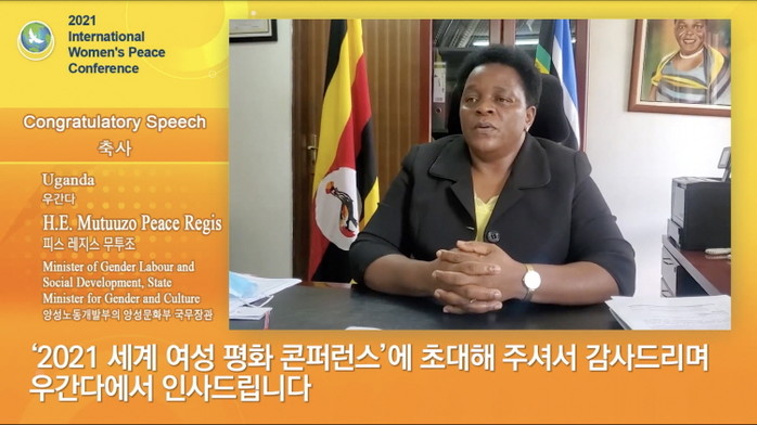 IWPG 자문위원인 무투조 피스 레지스 우간다 양성문화부 국무장관은 축사를 통해 “우리는 지속가능한 평화와 여성의 지위 향상에 있어서 39억 여성의 역할을 전 세계에서 느껴야 한다”라고 강조했다.