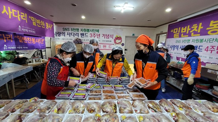 [대전=세계타임즈 이창재 기자] 9천명 SNS 대전시 봉사단체 사랑의 사다리 밴드(리더 이정제)는 23일 오전9시~오후1시, 유성구 소외계층 30가정에 밑반찬 봉사로 우리 사회의 따뜻한 사랑을 실천하였다.