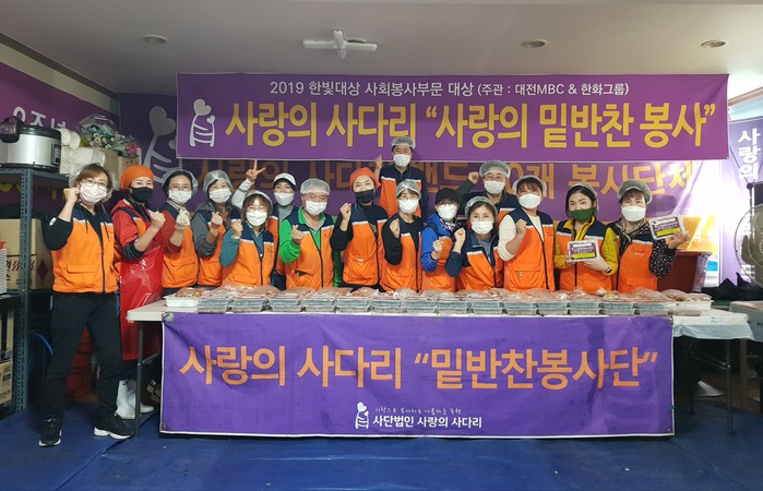 이날 봉사는 유희자 단장을 비롯한 자원봉사 15명이 대덕구 중리동에 위치한 사랑의 사다리 밴드 사무실에서 청태무침, 양파초절임, 무우짱아치를 만들고 배달을 하였다.