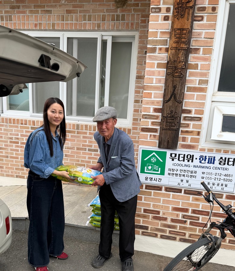 이날 (국민밥상 사랑누리 무료급식)박현장 대표이사와 남편 박상철은 북면 경노당에서 추가로 생필품 등을 전달 하기로 했다.