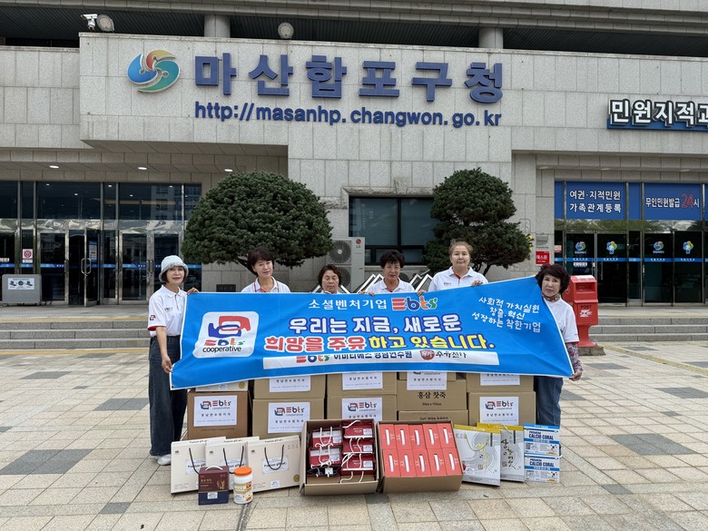 지난 9월24일(화) 이비티에스협동조합 경남연수원지국 .경남여성봉사단 이수진 회장과 조합원들이 서호관 창원특례시 마산합포구청장을 찾아 추석맞이 이웃돕기 사랑의 산물전달식을 가졌다.