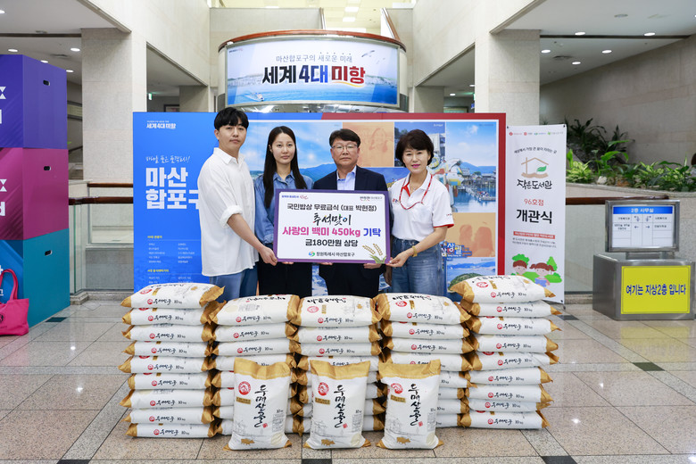 이날 이수진 원장은 (국민밥상 사랑누리 무료급식)박현장 대표이사 남편 박상철과 함께 지난 6월14일 결혼식에 기부받은 쌀 교환권 3일전 도정한 450Kg(일금 일백팔십만원)을 전달했다.