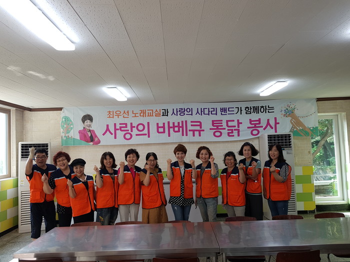 사랑의 사다리 밴드는 최우선 노래교실의 후원으로 8월 셋째 주 화요일에 후생학원에서 바비큐 통닭 봉사를 계획하고 있다.