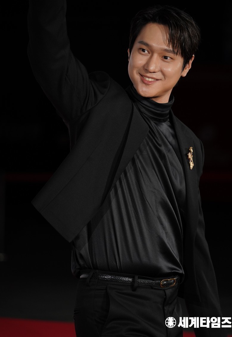 배우'고경표'가 17일 부산 해운대구 영화의전당에서 제30회 부산국제영화제(BIFF) 개막식 포토월에 참석해 팬들에게 인사를 하고있다.