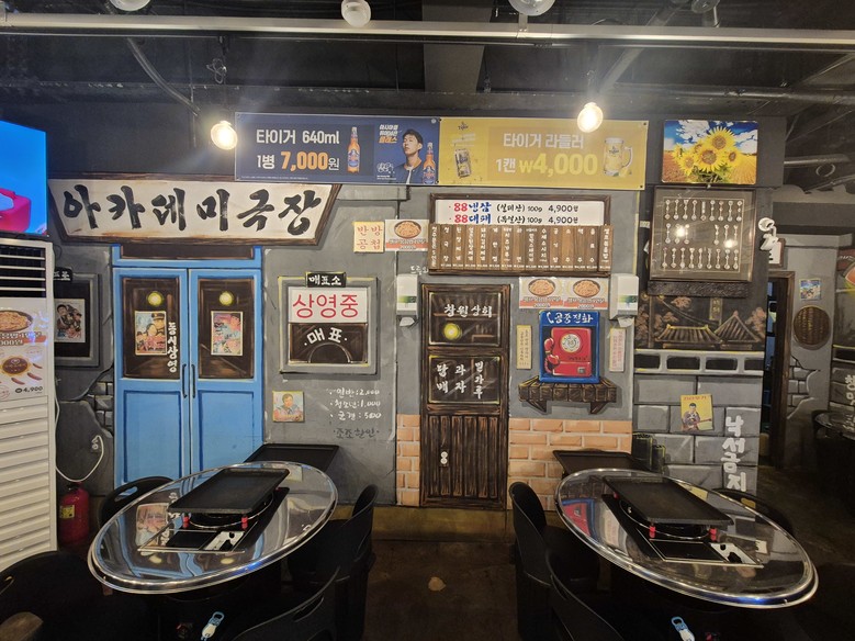 가계에 들어서면 옛날 60~70년대를 감성하는 인테리어 가득한 '88대패집 특히 이곳은 일반적인 식당분위기를 탈피하여 옛날 영화관 같은 감성적 분위기와 미식가들의 편의를 위한 여러 가지 소품들을 이용하여 편안하면서도 즐거움을 누리는 공간도 한몫하고 있다.