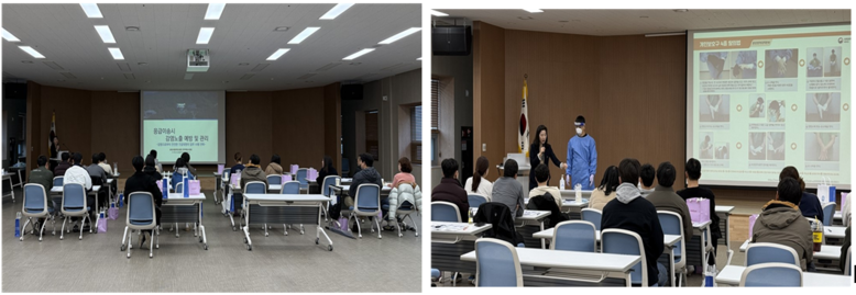 첫 번째 강의에서는 응급이송 중 발생할 수 있는 감염병 노출 위험에 대한 이해를 바탕으로 표준주의 실천 방법, 감염노출 발생 시 보고 체계, 현장 대응 절차 등 즉시 적용 가능한 실무 중심 교육이 진행됐다.
