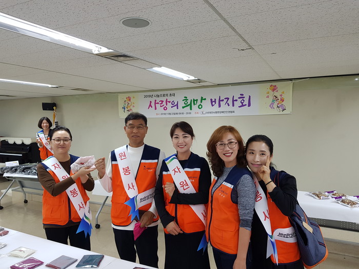 이날 바자회에는 유희자, 한철응 단장을 비롯해서 회원 10명이 홍보전단지 배포와 바자회 판매 봉사를 하였다.