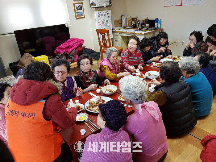 [대전=세계타임즈 이장성 기자] 다양한 봉사활동을 하고 있는 5천명 봉사단체 사랑의 사다리 밴드(리더 이정제)는 8일 오전10시, 유성구 반석동 반석마을4단지 임대주택아파트 경로당(회장 김용자)의 30여분의 어르신들께 바베큐 통닭으로 사회적 효행을 실천 하였다.