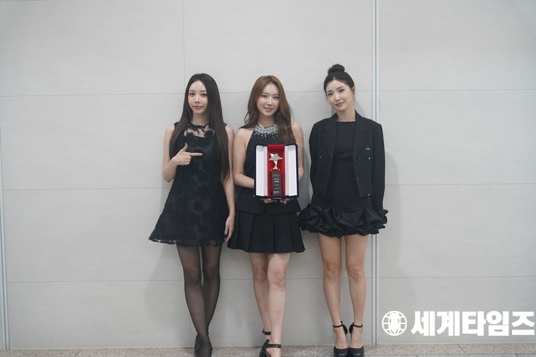 이날 포토월 행사에는 문화·예술·방송 분야의 주요 인사들이 참석해 자리를 빛낸 가운데 가수'브브걸'이 포즈를 취하고 있다.
