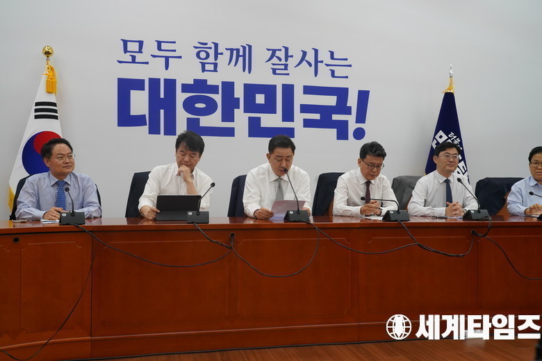 더불어민주당 김병기 당대표 직무대행 겸 원내대표가 19일 서울 여의도 국회에서 열린 정책조정회의에서 발언을 하고 있다.