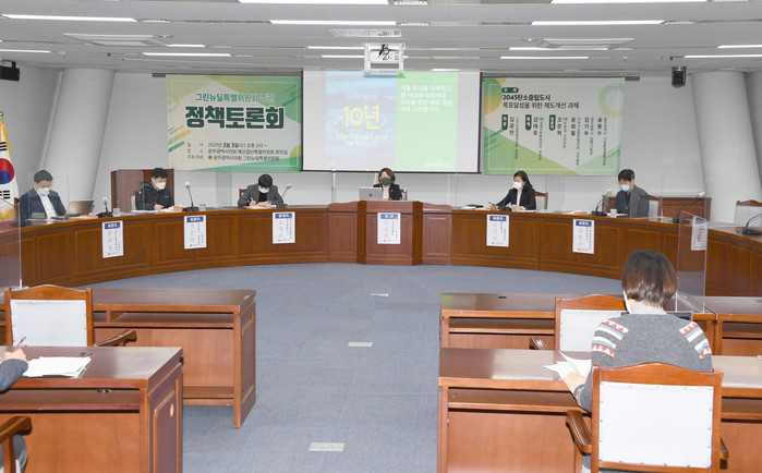 [광주=세계타임즈 손권일 기자] 광주시의회 그린뉴딜특위(위원장 김광란)는 3일 「2045탄소중립도시 광주」를 위한 제도 개선 정책토론회를 개최했다.