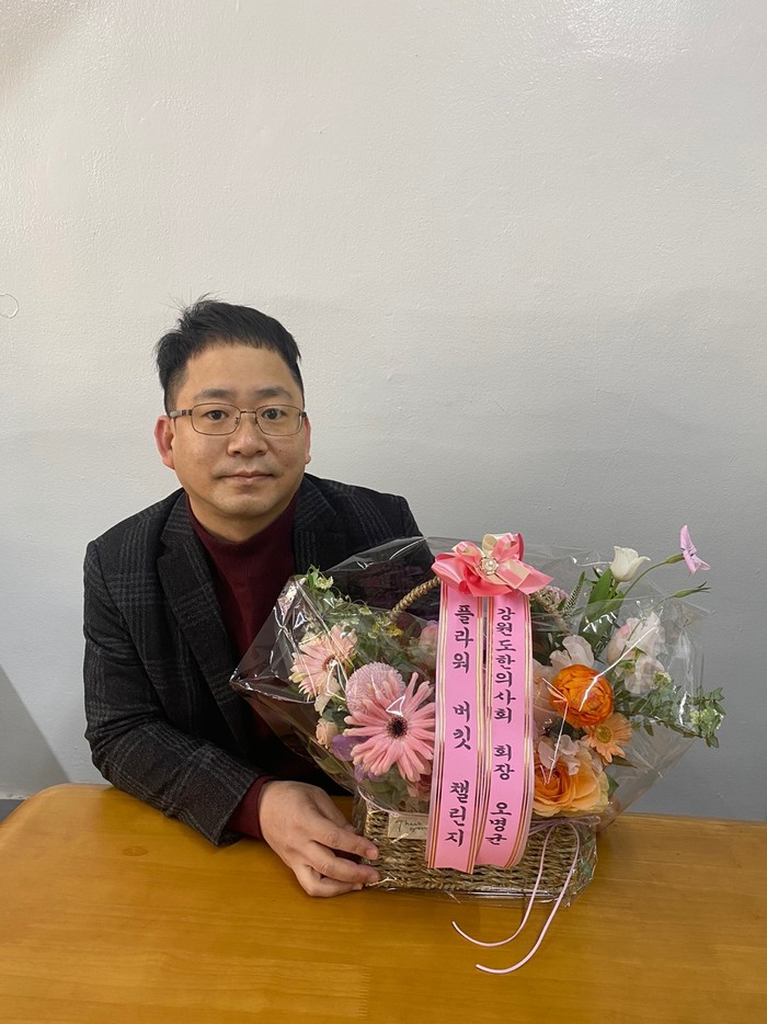 3월 2일(화) 오명균 강원도한의사회 회장으로부터 지목을 받아 꽃바구니를 전달받았다. 다음 대상자로 김형원 강원도의회 경제건설위원회 위원장(동해2)과 김혁동 강원도의회 의원(태백2)을 지목했다.