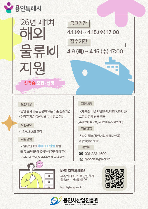 | ▲2026년 1차 해외물류비 지원 홍보 포스터.(사진=용인시산업진흥원) |