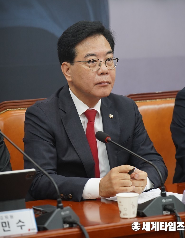 국민의힘 '송언석' 원내대표가 8일 서울 여의도 국회에서 열린 최고위원회의에서 발언하고 있다.