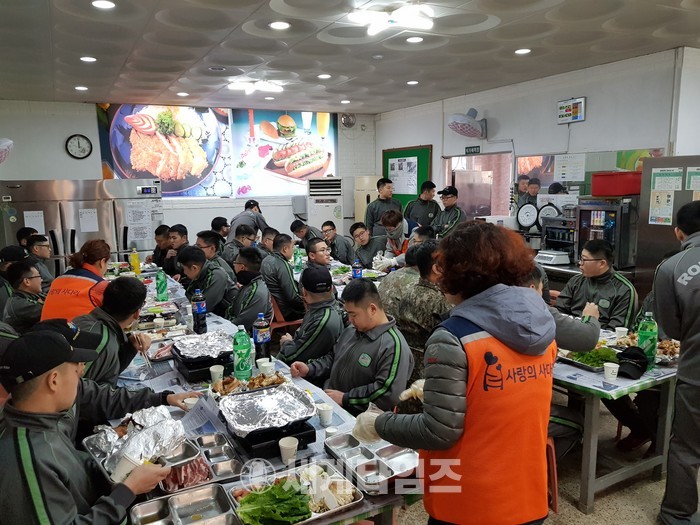 이날 봉사에는 신상일 바베큐 통닭봉사 회장, 유희자 나눔봉사단장을 비롯해서 회원 20명이 추운날씨에도 군부대에서 150마리 통닭을 만들어서 점심시간에 군 장병들에게 전달을 하였다.