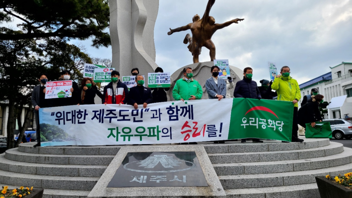 우리공화당 조원진 대통령 후보는 4일(금) 오전 11시, 제주도청 앞 기자회견에서 “위대한 제주도민을 만나뵙게 되어 정말 영광이다. 제주도는 싱가폴, 대만과 비교가 되지 않는 무궁무진한 잠재력과 천혜의 자원이 있는 도시이다”면서 “제주도의 발전이 곧 대한민국의 발전이며, 제주도가 국제자유도시로 우뚝설 때 대한민국이 세계 7위권의 경제강국으로 발전할 것”이라고 말했다.