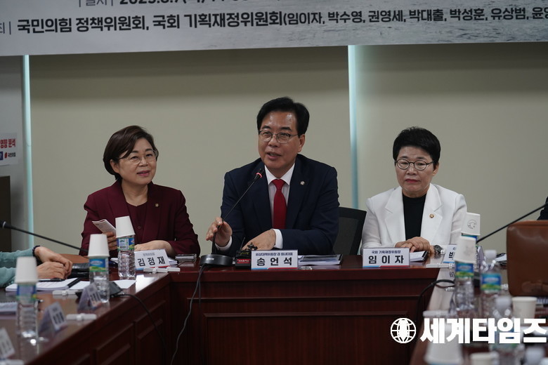 '송언석' 국민의힘 비상대책위원장 겸 원내대표가 8일 오후 서울 여의도 국회 의원회관에서 열린 '이재명 정부 첫 증세안, 누구를 위한 세제 개편인가?'를 주제로 열린 2025 세제 개편안 평가 및 시장 영향 분석 간담회에 참석해 인사말하고 있다.