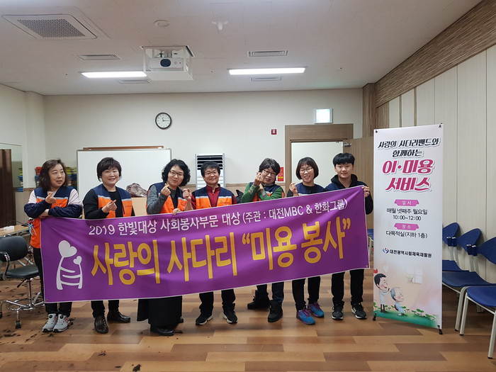 대전시체육재활원 박순용 원장은 “매월1회 사랑의 사다리 밴드 봉사단체에서 미용봉사를 지원해주어서 큰힘과 위안이 된다.”면서 감사함을 전했다.