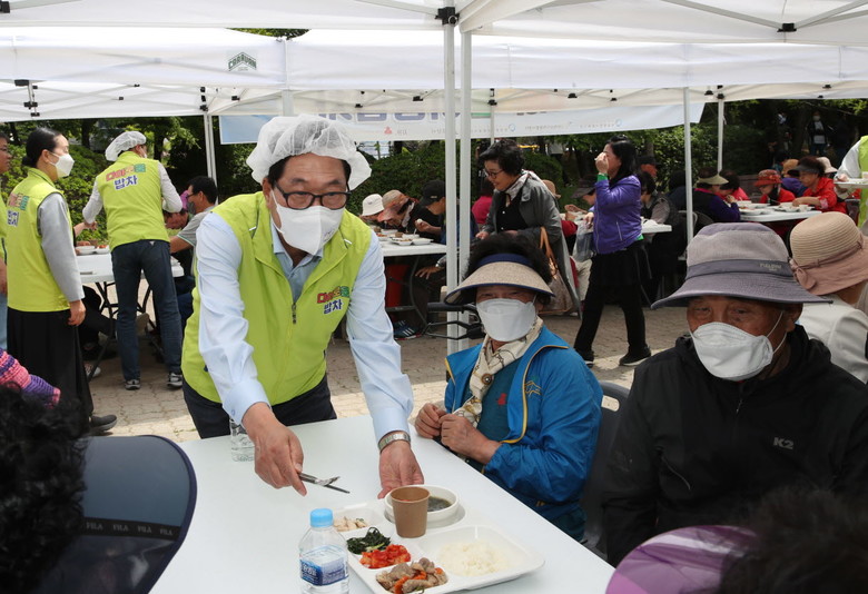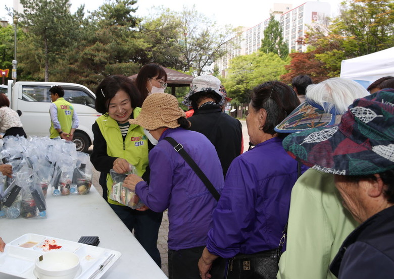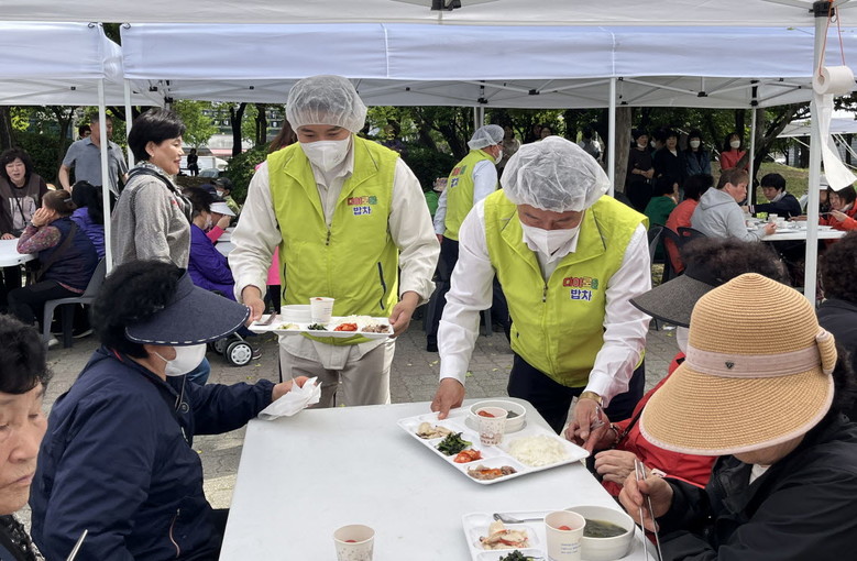 의원들은 직접 음식을 식판에 담아 공원을 찾은 시민들에게 정성스럽게 전달했으며, 식사를 하는 동안 시민들을 만나 환절기에 건강은 어떤지, 생활하는 중 불편함은 없는지 살피는 것도 잊지 않았다.