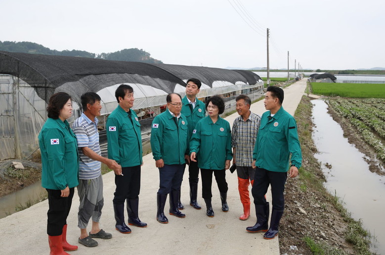 피해농가들은 학교급식 친환경 농작물과 탑마루 수박을 재배하는 곳으로 의장단은 집중호우로 인한 피해실태를 점검하고 피해복구와 추가 피해 방지 대책 등을 논의했다.