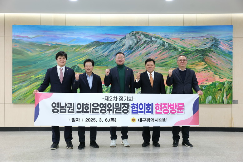 대구시의회가 주최한 영남권시도의회운영위원장협의회 제2차 정기회는 지난 12월 울산에서 처음으로 개최된 후, 대구에서 두 번째로 개최됐다. 대구시의회 하중환 운영위원장을 비롯한 영남권시도의회 운영위원장 5명이 참석하여 의정 활동 교류와 함께 영남권 지역의 공동 현안에 대해 논의했다.