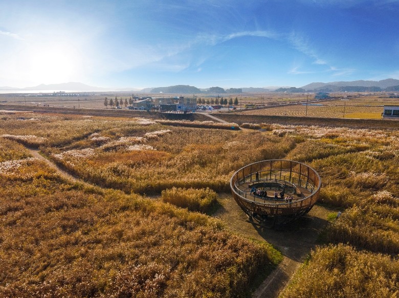 가을 바람에 일렁이는 갈대가 넓은 들판을 갈색빛으로 물들이며 이국적인 풍경을 연출한다.