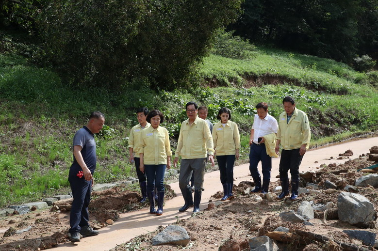 집중호우로 인해 관내 곳곳에 제방 유실, 농경지 침수 등 피해가 잇달아 발생하자 최종오 의장, 한동연 부의장, 김진규 의회운영위원장, 장경호 기획행정위원장, 오임선 보건복지위원장, 김충영 산업건설위원장은 현장으로 나섰다.