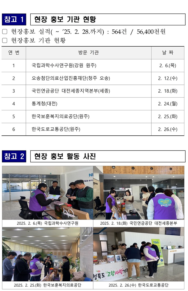 이렇게 두 달이라는 짧은 시간 안에 많은 모금액을 달성할 수 있었던 것은 충북도청 고향사랑기부제팀 직원들이 직접 도내·외 기관을 찾아 현장 홍보 활동을 적극적으로 펼쳤기 때문이다.