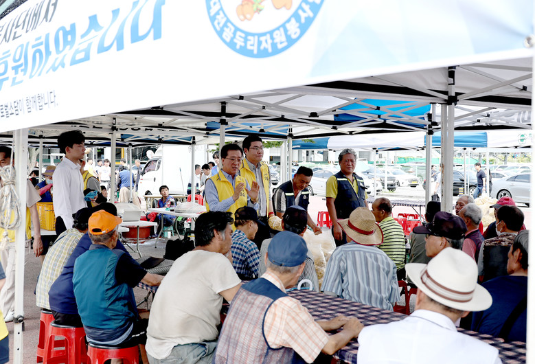 [대전 세계타임즈=이채봉 기자] 대전시의회 조원휘 의장은 28일 대전역 동광장 일원에서 개최된 대전곰두리 자원봉사연합 주관 ‘나눔과 희망의 밥차’행사에 정명국 행정자치위원장과 참석해 자원봉사자들을 격려하는 가운데, 노숙인 등 300여명의 소외계층을 대상으로 삼계탕 급식봉사를 실천했다.