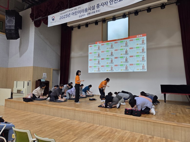 해당 교육은 ‘어린이 안전관리에 관한 법률’에 따른 법정 의무교육으로, 학원·어린이집 등 13세 미만 어린이가 이용하는 시설의 종사자는 응급처치 실습을 포함한 안전교육을 매년 4시간 이상 받아야 한다.