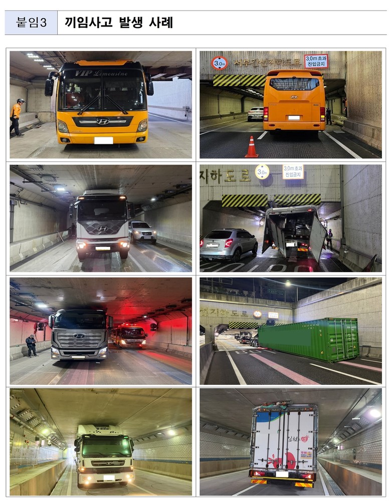 한편, 서울시는 지하도로 운영사와 함께 끼임사고 운전자 인터뷰와 사고 분석을 통해 ▴내비게이션 우회 기능 미설정 ▴차량 높이에 대한 오판 ▴소형차 전용도로에 대한 인식 부족 등이 사고의 주요 원인이라는 점을 확인했다.