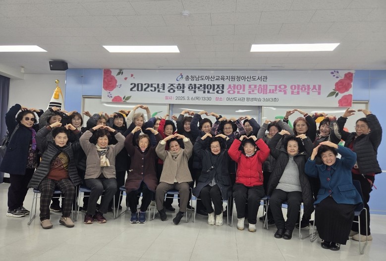 [충남 세계타임즈=이현진 기자] 충청남도아산교육지원청아산도서관(관장 박찬희)은 6일(목) 아산도서관 평생학습 3실에서 입학생 19명과 재학생 8명이 참석한 가운데「2025학년도 중학 학력인정 1,2단계 문해교육 입학식(개학식)」을 개최했다고 7일 밝혔다.