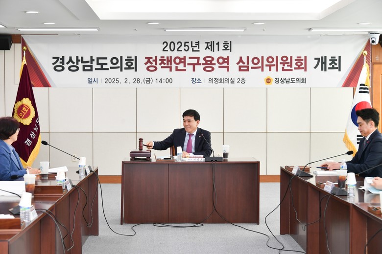 [경남 세계타임즈=최성룡 기자] 경상남도의회는 2025년 2월 28일, 제1회 경상남도의회 정책연구용역 심의위원회를 개최하였다. 이번 심의위원회는 서민호 위원장의 주도로 진행되었으며, 의회 운영위원회 소속 의원 3명과 각 분야에서 풍부한 경험과 전문성을 지닌 외부 전문가 4명이 함께 참여하여, 8개 연구단체의 연구용역에 대해 심도 있는 검토를 진행하였다.
