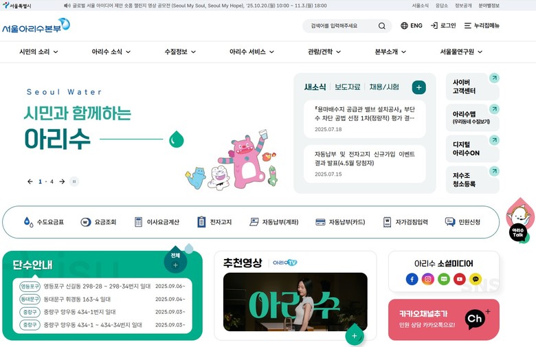 이회승 서울아리수본부장은 “아리수 누리집은 연간 약 70만 명(하루 평균 2천 명)이 찾는 대표 온라인 창구”라며, “이번 개편을 통해 시민이 아리수 관련 정보를 보다 쉽고 편리하게 이용할 수 있도록 하겠다”고 말했다.