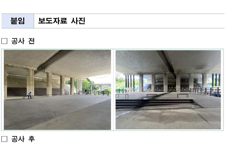 이번 정비를 통해 노후되었던 교량 하부 공간은 운동과 휴식이 어우러진 공간으로 재탄생하여, 인근 직장인과 지역 주민들의 일상 속 여가와 휴식의 질을 높이는 공간이 될 것으로 기대된다.