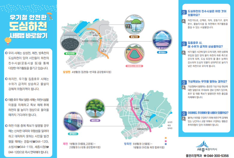 시는 안전한 도심하천 이용법 리플릿을 제작해 세종시교육청과 읍면동 행정복지센터 등에 배포했다고 15일 밝혔다.