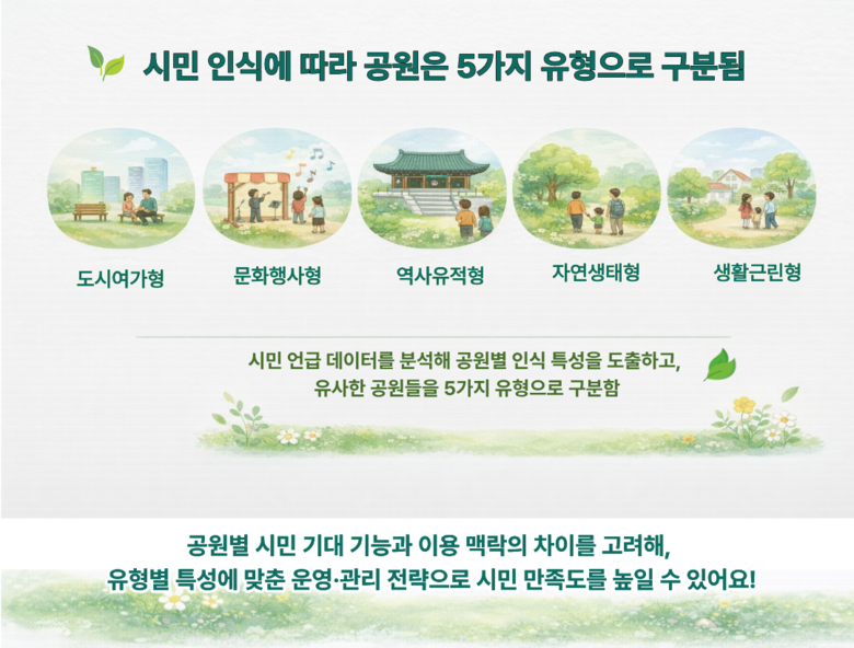- 도시여가‧문화행사형 등 공원별 시민 인식, 기대하는 기능 다른 것으로 분석돼