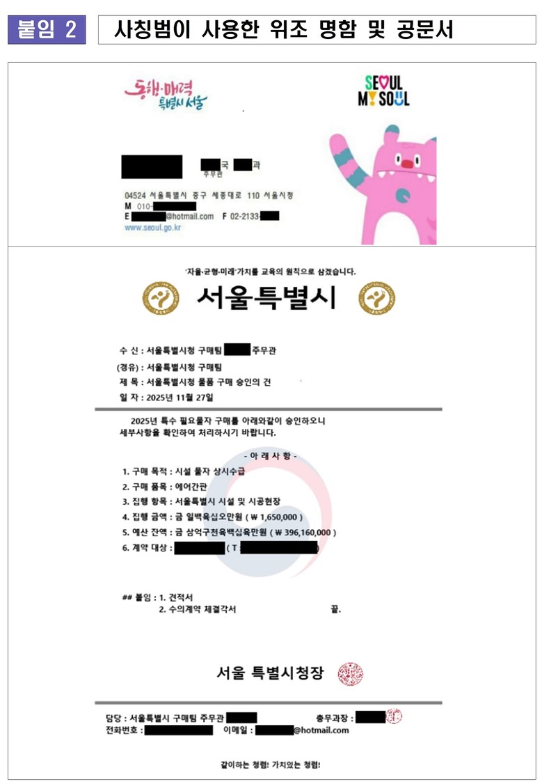 - 서울시, 허위 공문‧위조 명함 등 증거 수집…형법 위반 혐의로 고발 조치 착수