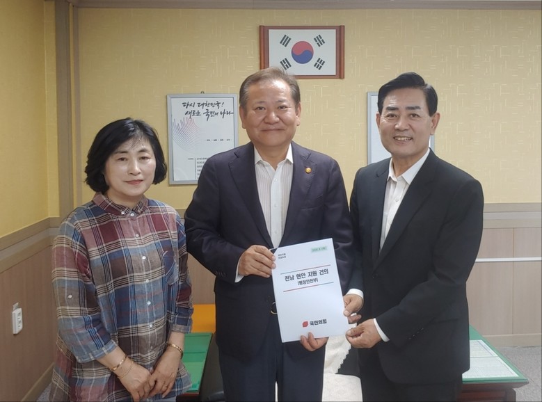 이번 면담에는 김화진 전남도당위원장이 동행하여, 인구소멸 위기에 처한 전남지역의 문제를 해결하기 위한 방안을 제시하고, 필요한 국비 지원을 건의했다.
