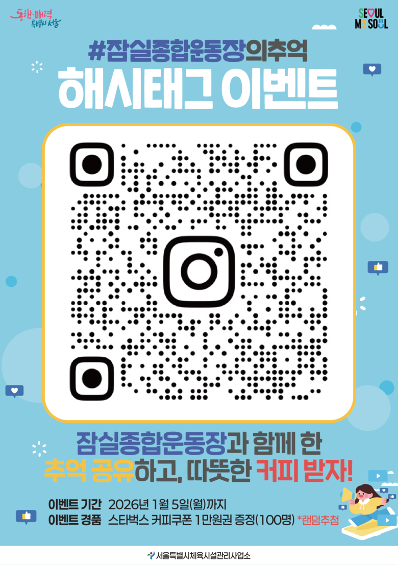 ① 서울시체육시설관리사업소 공식 인스타그램 팔로우(@jamsilstadium)
