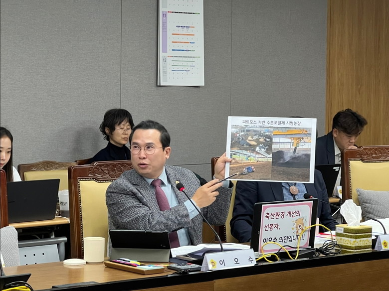 [경기도 세계타임즈=송민수 기자] 경기도의회 농정해양위원회 이오수 의원(국민의힘, 수원9)은 18일 열린 축산동물복지국 행정사무감사에서 피트모스를 활용한 축분 자원화 정책의 확대와 전용 공동퇴비사 설치, 부서 간 정책 연계 체계의 필요성을 집중 제기했다.