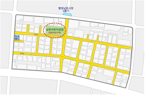우선 남문어린이공원 부근의 환경을 집중적으로 개선해 주민들의 커뮤니티 공간으로써 활동성을 강화할 계획이다. 또한 골목 자연감시 강화를 위한 야간 보행환경 개선 등과 같은 대상지 특성을 고려한 맞춤형 범죄예방디자인을 개발‧적용할 계획이다.