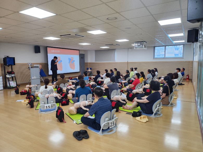 이번 교육은 심정지 발생 시 생존율을 결정짓는 골든타임 4분의 중요성을 알리고, 구민들이 실제 상황에서 당황하지 않고 대처할 수 있도록 실습 위주로 구성됐다.
