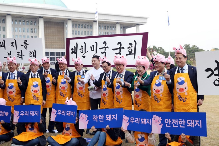 돼지고기 소비 촉진을 위해 열린 이날 행사는 김경협·박정·윤후덕·김현권 의원이 공동 주최했다.