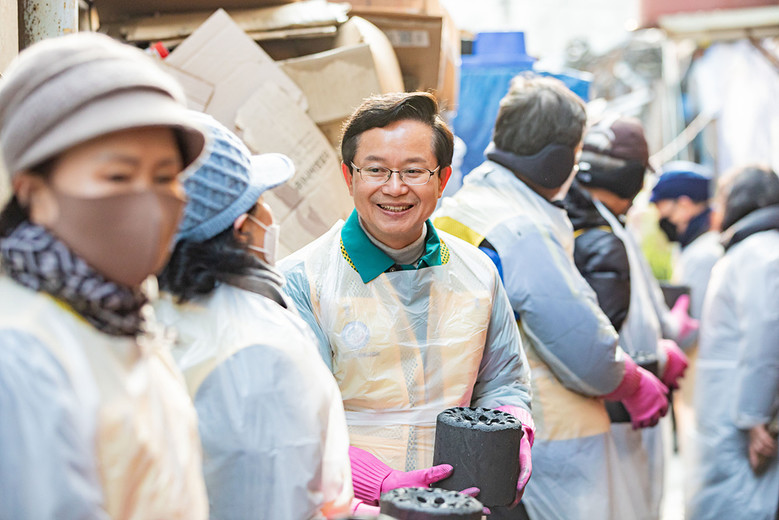 | ▲ 지난해 쪽방촌 연탄배달에 나선 최호권 영등포구청장 |