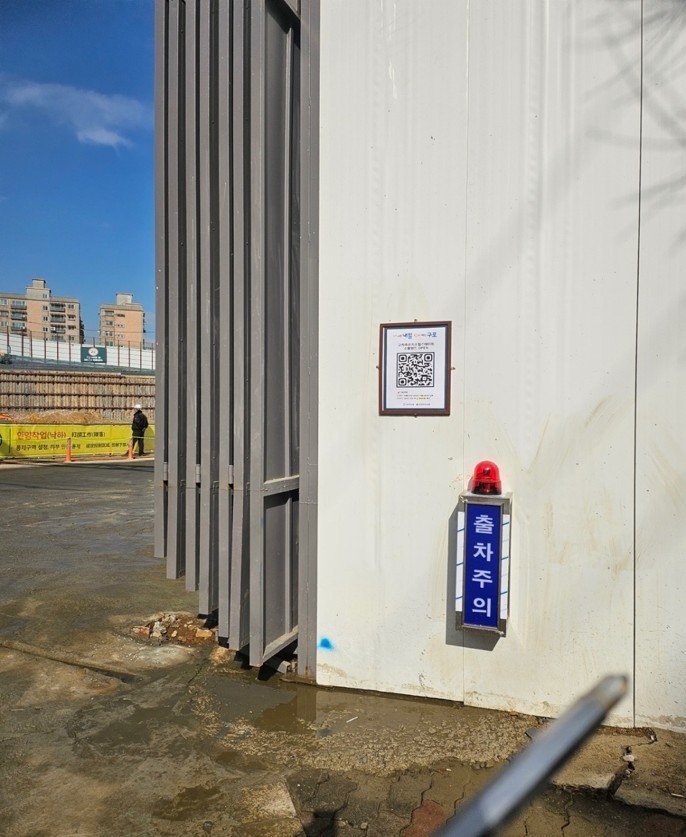 | ▲ 고척4주택재개발정비사업(고척 푸르지오 힐스테이트) 공사 현장 출입구에 부착된 공사 정보 안내 큐알(QR)코드 모습. 주민들은 큐알(QR)코드를 통해 공사 일정과 주요 안내사항을 확인할 수 있다. |