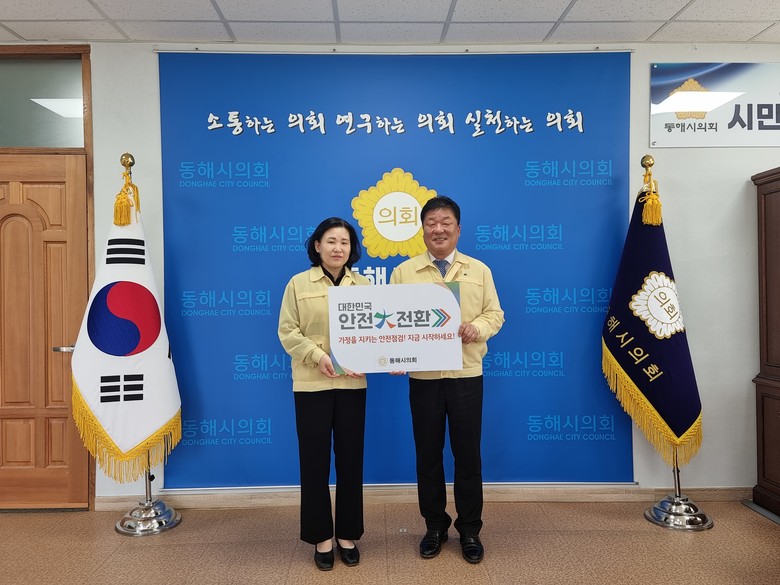 [동해시 세계타임즈=김민석 기자] 동해시의회(의장 이동호)는 가정 내 안전사고를 예방하고 안전점검 문화를 확산하고자 심규언 동해시장에 이어 ‘집중안전점검 기관장 릴레이 캠페인’의 두 번째 주자로 참여하였다.