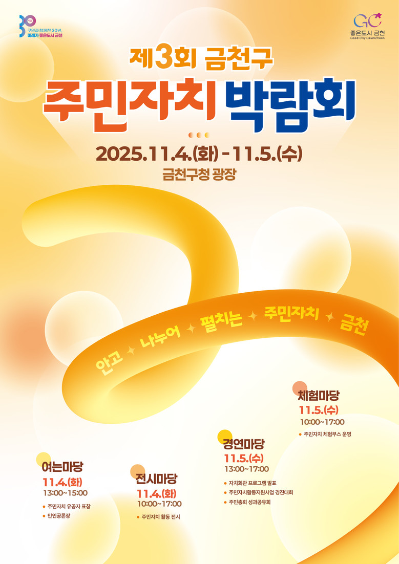 이번 행사는 주민들이 직접 참여해 정책을 논의하고 결정하며, 한 해 동안의 주민자치 활동 성과를 공유·교류하는 자리로 마련됐다. 주민이 주체가 되는 실질적인 ‘자치의 장’으로, 금천형 주민자치의 성숙한 모습을 보여줄 예정이다.